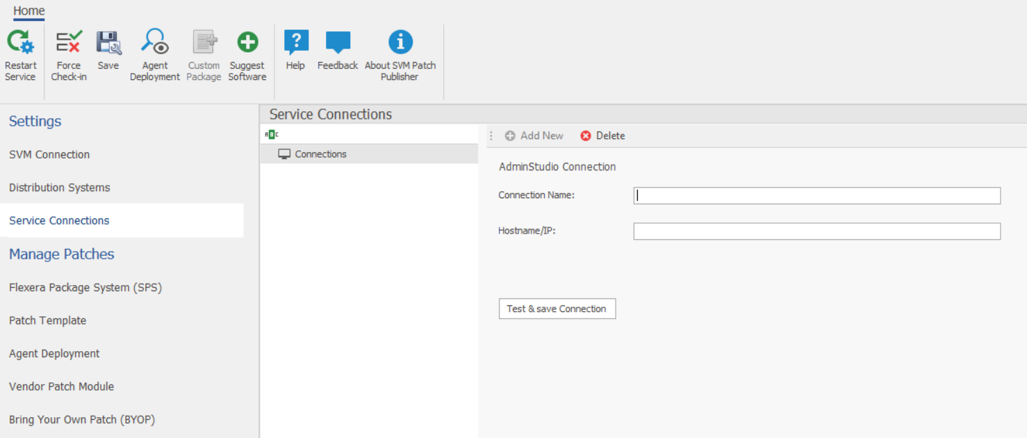 You can configure connections to the AdminStudio server where you can request packages from Patch Publisher to the AdminStudio.
