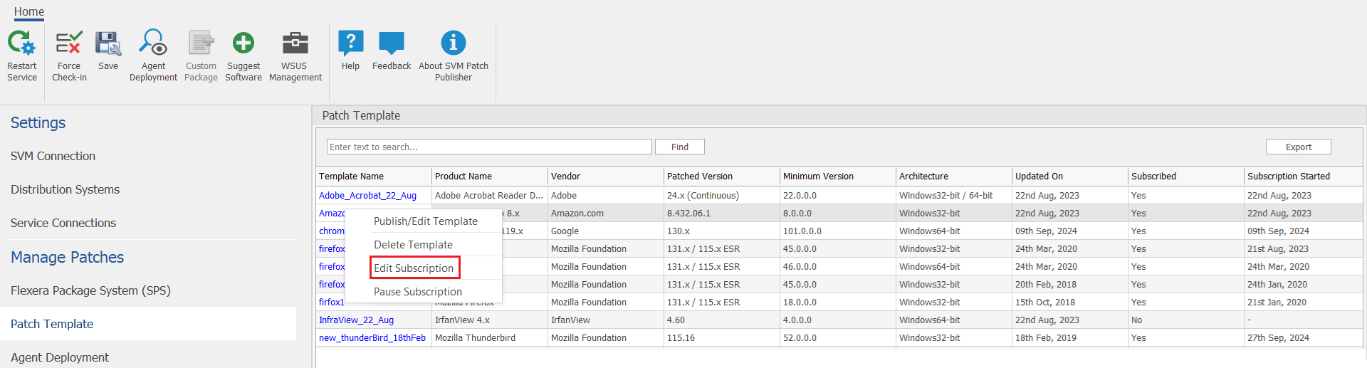 To use this option, navigate to Manage Patches >> Vendor Patch Module or Manage Patches >> Patch Template.