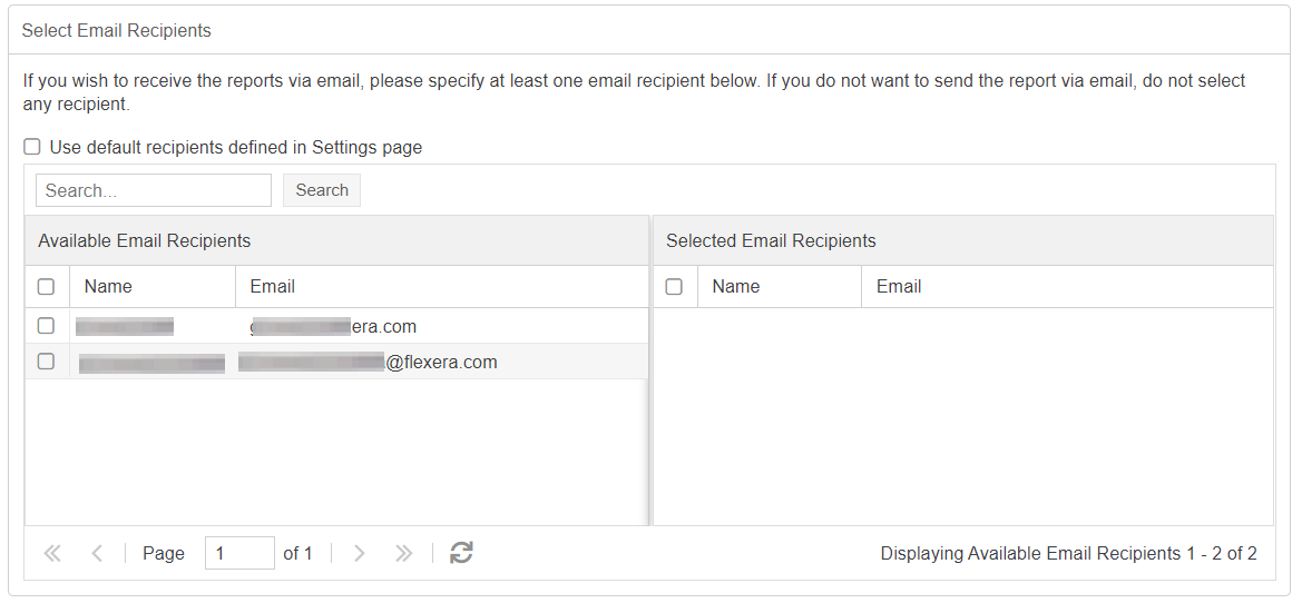 Choose the email address of the person(s) receiving the report or, if you do not want to send the report via email, do not select any recipients.