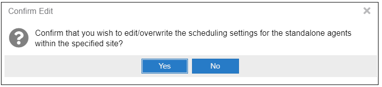 • Any edits to the scan schedule will come into effect only after the currently scheduled scan has completed. Each agent could potentially have a scan scheduled at different times. Therefore, any new scan configuration edit will affect the scan schedule at various times.